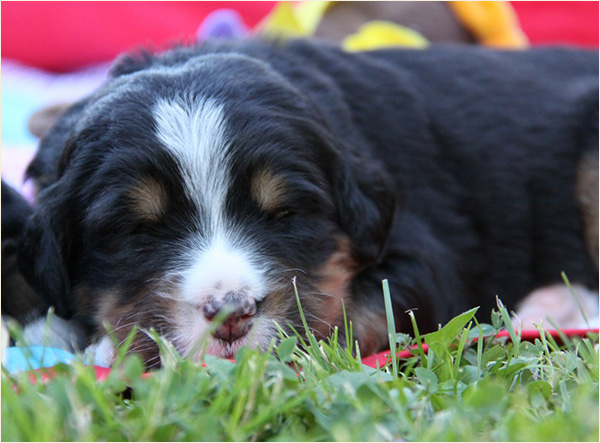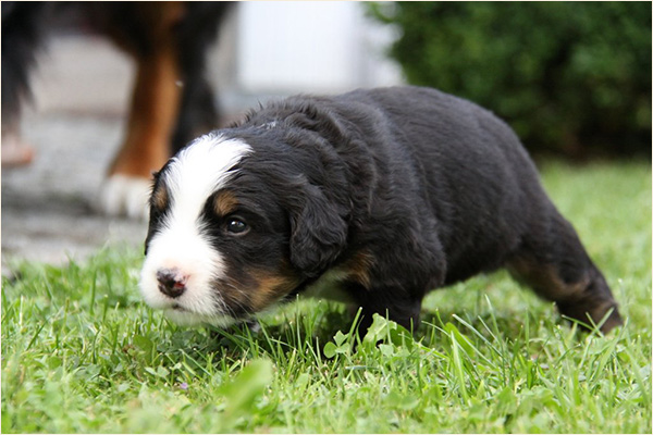 In keiner Woche passiert „so viel" wie in der 3. Lebenswoche kleiner, erwachender Bernerkinder. Aus kleinen, robbenden Schlafmützchen werden plötzlich richtige, kleine Hunde, und täglich (man meint fast stündlich!) kommen neue Fähigkeiten dazu.