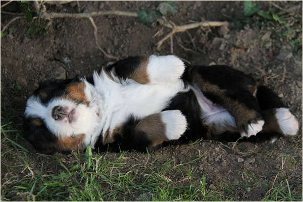 Der Berner liegt im Hauseingang,...egal ob 4 Wochen alt oder 6 Jahre...