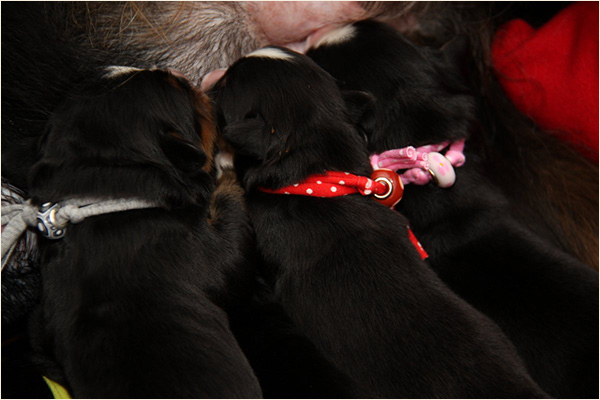 Die Erfahrung von zwei vorangegangenen Würfen merkt man ihr an, sie ist sehr sicher und routiniert im Umgang, kennt ihren Säugerhytmus ganz genau und weiss, „was“ und „wann“ die Babys ihre Mama brauchen.