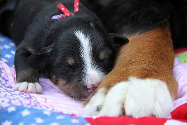Gemini schläft zwischen Pünktchen, Sternchen und Blümchen..