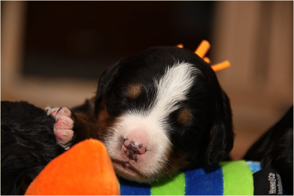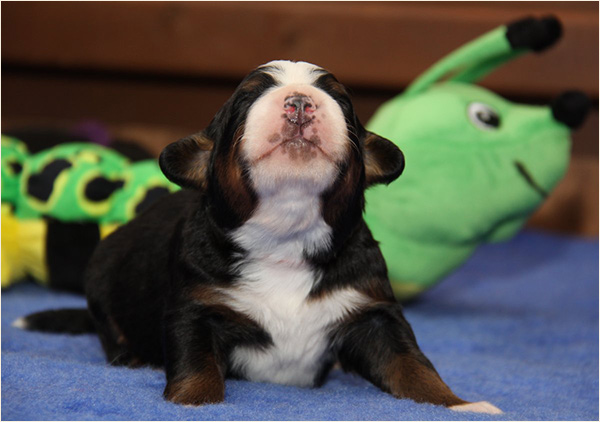 Ansonsten ist die Entwicklung der 2. Lebenswoche wirklich immer wieder bei jedem Wurf etwas ganz Besonderes! Ab dem 8.-10. Tag tut sich plötzlich sooooo viel. Sie versuchen auf ihren Beinchen zu stehen, wollen schon „laufen“, aber das viel zu schwere Köpfchen lässt sie immer wieder hinplumpsen.