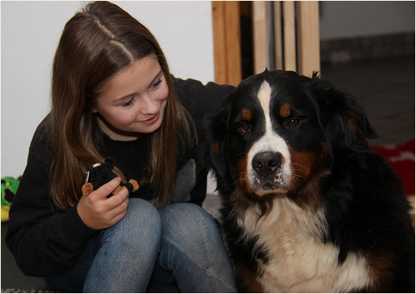 Ebenso ein junger Berner, der sich vertrauensvoll an seine neuen Menschen binden wird,…weil er während seiner Aufzucht Geborgenheit, Liebe und Förderung in allen Bereichen erfahren hat.