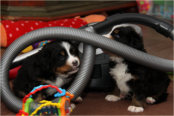Nun steigern wir auch die akustischen Reize, der Staubsauger gehört ja ohnehin dazu,…immer wieder werden Dinge scheppernd fallen gelassen oder Geräte mit unterschiedlichem Klang angeschaltet. Da wir ja mit unseren Hunden bzw. Welpen einen gemeinsamen Alltag haben,..ist sowieso alles normal.
